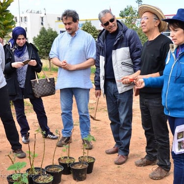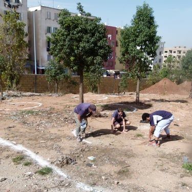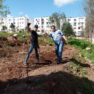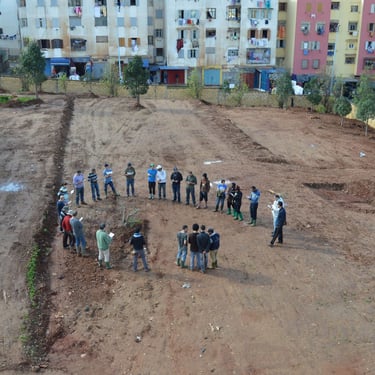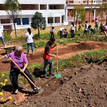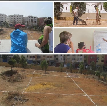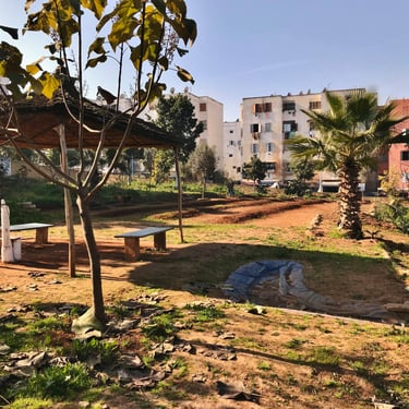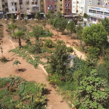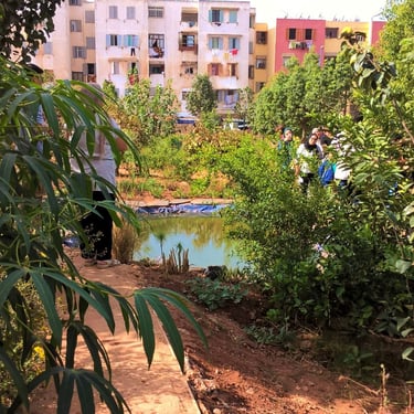 Sur une friche insalubre, de 2014 à 2016, je pilote la création et la réalisation d'un jardin en permaculture urbaine inspiré des jardins andalous. Terrassement, aménagements, plantations, irrigation par gravité, et surtout nombreux ateliers pendant la réalisation du jardin, implication de jeunes et d'habitants de Casablanca.